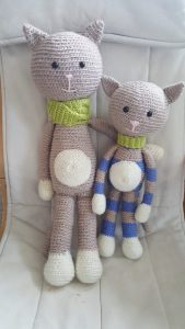 Två söta små katter, tillverkade av en volontär. Vinsten för alla alster går direkt till våra djur. Djur som dessa kommer finnas till salu på Öppen gård på Rinkaby i april!