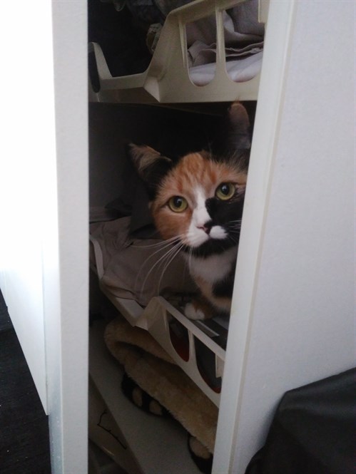 Nu har vi bott hos våran nya matte i 1 månad. Vi leker och vi älskar att ligga i sängen ihop med matte på kvällarna och morgonen. Jag Doris tycker om att ligga på mattes huvudkudde. Och har hittat goa platser som jag gillar att ligga och sova på. Min syster Lily gillar även hon att ligga i sängen morgon och kväll ihop med matte och ibland i knät, har hittat favorit platser att sova på en av dom är uppe på garderoben. Men även i fönstrena med min syster Doris.