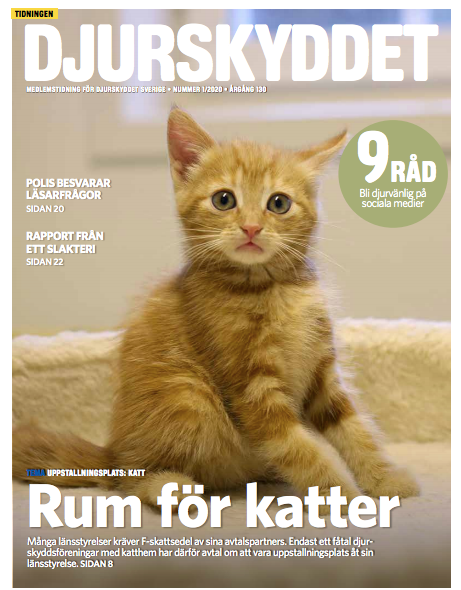 Läs gärna mer om Djurskyddet Sverige på www.djurskyddet.se och följ organisationen på www.facebook.com/djurskyddet