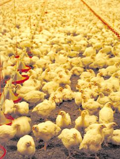 Svenska slaktkycklingar lever ofta i storskaliga anläggningar. Branschen inrättade 1987 ett djuromsorgsprogram, som innebär att varje uppfödningsanläggning årligen besiktigas utifrån miljö och skötsel. Utifrån besiktningsresultatet avgörs hur många kycklingar (kg kyckling) uppfödaren får ha per kvadratmeter. I Sverige är den maximala gränsen 36 kg per kvadratmeter eller 25 kycklingar. Enligt EU:s kycklingdirektiv tillåts 42 kg kycklingar per kvadratmeter.