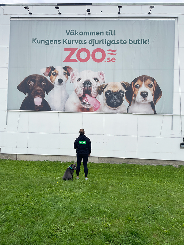 I början av hösten granskade vi Zoo.se i Kungens Kurva. Utanför butiken upptäckte vi en stor affisch med två extremavlade hundar, en engelsk bulldog och en mops.